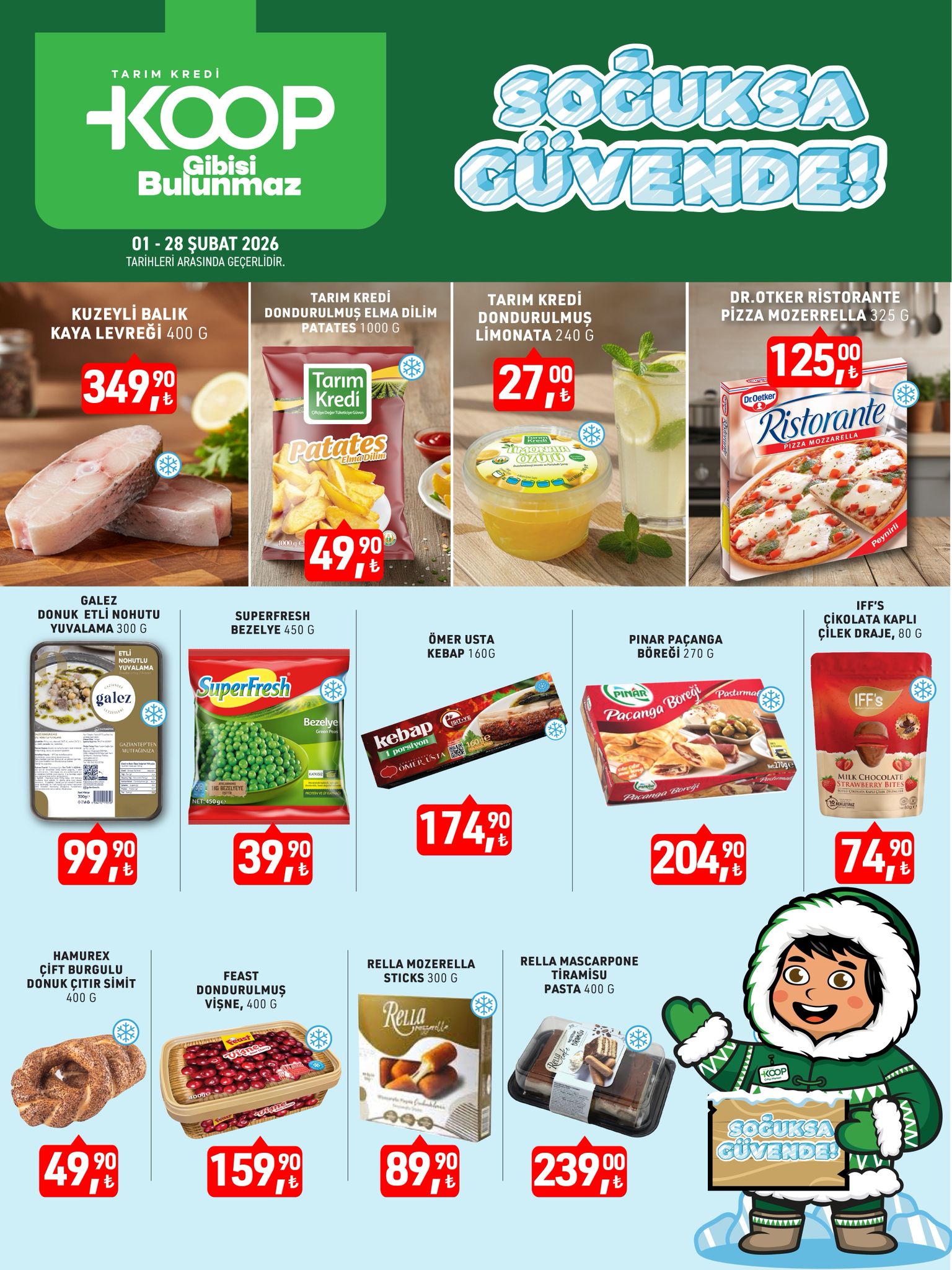 Tarım Kredi Kooperatif Marketleri, 2026 yılına hızlı bir giriş yaparak dondurulmuş ürün grubunda dev bir indirim kampanyası başlattı. “Soğuksa Güvende” sloganıyla duyurulan yeni katalog, özellikle pratik mutfak çözümleri arayan vatandaşlar için büyük fırsatlar sunuyor.